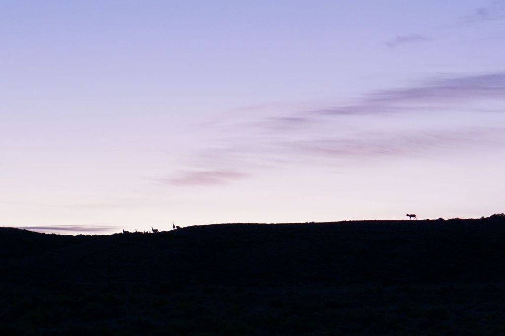 Et encore plus désertique, nous sommes passés par le Red Desert, autrement appelé Great Divide Basin. C’était une petite aventure pour nous ! Lors de la préparation de l’itinéraire en France, nous nous sommes interrogés sur ce passage, et ne savions pas si nous allions entreprendre de traverser ce désert ou non… Ravis de l’avoir fait ! Nous y avons rencontré plus d’une centaine d’antilopes, des chevaux sauvages, entendu les hurlements des coyotes chaque nuit, c’était chouette !
