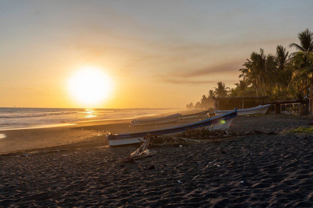 Notre tente sera posée au premier étage de leur restaurant ouvert (4 piquets et un toit) au plus proche de la plage. Le voisin nous fait profiter de son feu d’artifice 🎆🎇. Les vagues nous berceront toute la nuit. La fraîcheur n’arrivera que bien plus tard. Mais nous sommes heureux de cette première journée au Salvador. 😄 Pourvu que ça dure!!!