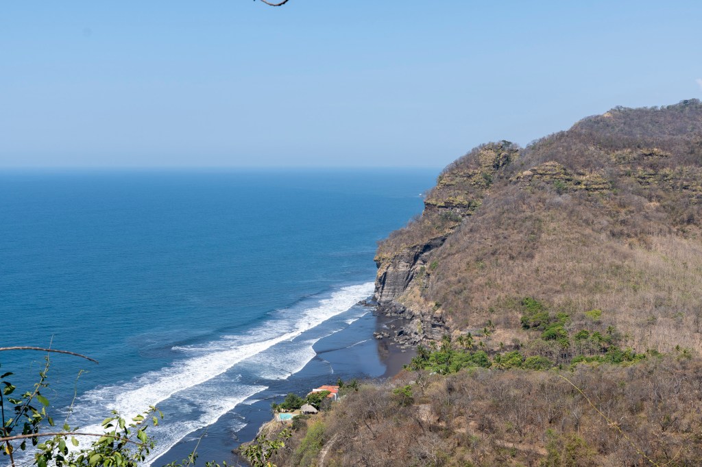 Pas de dénivelé aujourd’hui mais toujours cette chaleur qui nous donne mal à la tête… Nous approchons de l’endroit présumé du soir (issu d’une appli)… et ne trouvons rien. Que des villas de salvadoriens en bord de mer. Il est déjà 15h…