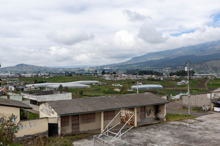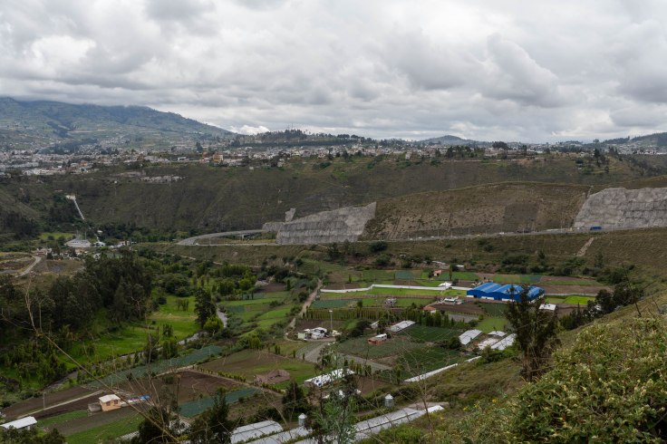 Le paysage est plus campagnard. Plus verts. Plus espacés. On s’accroche toujours, le mental est bien présent et nous voici à l’entrée de Riobamba.