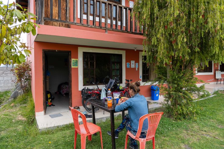 Nous, on discute et prévoit la suite…. qui nous paraît trop ambitieuse pour nous. Le Parc du Chimborazo ne se fera pas par la route Nord (il nous faudrait 3 jours pour arriver juste à l’entrée du parc avec 2300m de dénivelé et de la logistique « poids/ nourriture » très conséquente). Nous continuerons donc sur cette route Panaméricaine, sans envie jusqu’à Riobamba.