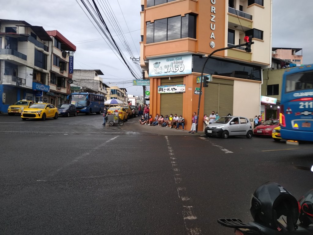 Bien repus, notre recherche pour la réparation de l’ordinateur ou le remplacement de son écran se poursuit. Encore chou blanc mais, lors de notre retour vers notre hôtel, nous traversons un très grand carrefour, avec feux tricolores. Du monde partout, sur les trottoirs, des policiers également sont à l’arrêt sur leur moto, et même certains habitants sont assis sur leurs chaises sur la route! Tous regardent en l’air….??? Un match de football sur un écran GEANT entre l’équipe de l’Equateur contre celle du Brésil! Incroyable!! Dans la rue, les habitants sont aussi dans leur voiture à l’arrêt sur la chaussée…. Nous verrons une partie du match sur notre superbe télévision dans notre chambre 😁