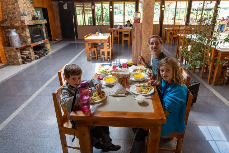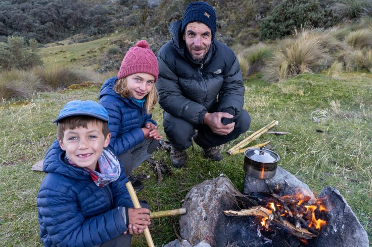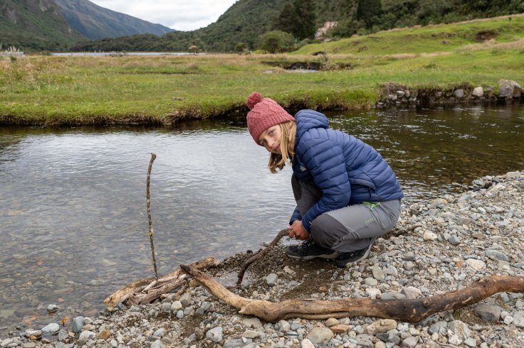 Emma et Sylvain partent explorer les environs et les lamas qui broutent. Pendant que RaphaĂ«l et moi organisons l’intĂ©rieur de notre chez nous! L’aprĂšs-midi sera au chaud pour certains (Sylvain et moi trop frigorifiĂ©s: on se fait vieux đ), dehors pour jouer Ă faire de la peinture avec des poils de lamas accrochĂ©s Ă un bĂąton ou avec les cailloux de la riviĂšre pour d’autres (Emma et RaphaĂ«l). Vers 17h, nous dĂ©cidons de faire le tour de la lagune (prĂ©voir 1h30 selon les gardiens) et d’apprĂ©cier le calme. Les enfants sont ravis de jouer avec leur bĂąton et les plantes, les adultes en profitent pour rĂ©flĂ©chir sur leurs prochaines routes… La pĂ©nombre nous rattrape et nous n’avons pas pris de frontal (erreur de dĂ©butant!). Le tour sera bouclĂ© en 1h et avant la pluie!
