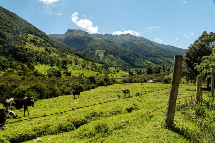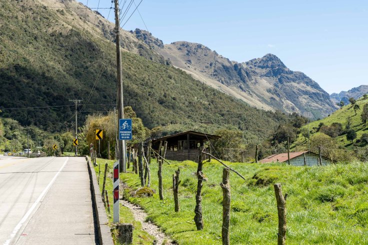 Nous avons en ligne de mire une lagune dans le parc de Cajas, en espĂ©rant pouvoir y dormir et Ă©ventuellement traverser le parc Ă vĂ©lo. 7km de route goudronnĂ©e Ă traverser des hameaux, ĂȘtre tĂ©moins de travaux de canalisations creusĂ©s par les habitants des communautĂ©s, Ă acheter sur le bord de la route des fruits et lĂ©gumes pour les prochains jours, Ă prendre de la hauteur…(D+ 357m) et l’embranchement arrive sur notre gauche. Une vallĂ©e part sur ce cĂŽtĂ©. On y devine au fond la lagune.
