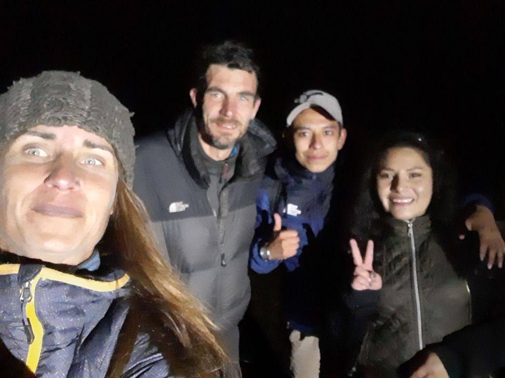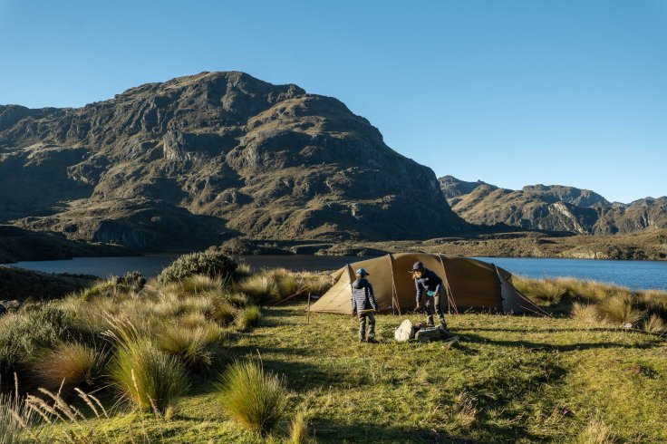 Ăa y est. Entre des ruisseaux et un petit lac, on trouve un espace, pas trĂšs plat mais ça ira pour ce soir. Le soleil se couche tout le monde est Ă l’intĂ©rieur. Dehors le vent souffle Ă©normĂ©ment. Sylvain a le courage de faire chauffer l’eau pour les pĂątes pendant que j’Ă©pluche les cruditĂ©s. On mange dans la tente ce soir!! Avec nos bonnets et doudounes! Tout ce que l’on a dans notre pochon de vĂȘtements. On s’aperçoit que l’on est dans les limites du Parc de Cajas…. le bivouac n’est pas permis sur ses terres. On croise les doigts pour qu’aucun guide ne nous ait vu. On verra pour demain matin.
