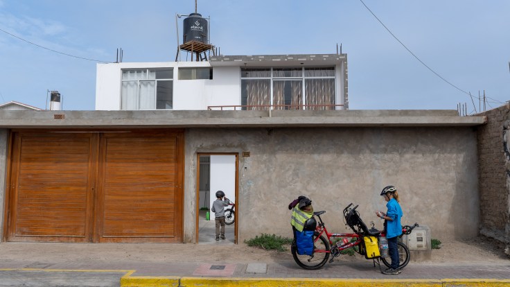 Départ de Pisco à 9h, normal car on ne s’est levés qu’à 8h!!! La reprise est dure après une semaine de relâchement sportif et mental!🥴 Alors on a pris le temps pour petit-déjeuner, ranger nos dernières sacoches dans cette grande maison, retrouver nos marques, vite oubliées durant cette semaine de transition où Papy Alain est rentré en France (il est bien rentré et a déjà bien mangé de bons produits frais comme du bon pain!).