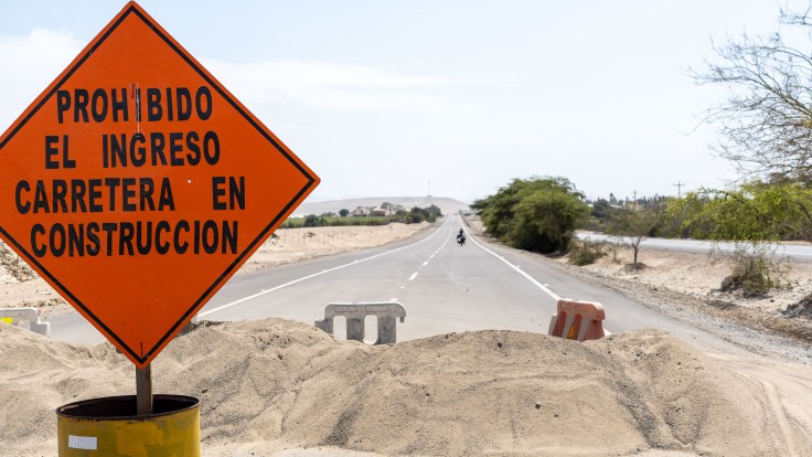 C’est sale… mais on y serait en sécurité, non visible de la Panaméricaine, et surtout derrière les barrières de la route fermée à la circulation, où aucun véhicule ne passe (à part des vélos comme nous!!) . Et puis, il est 17h30, et dans 30min, le soleil se couche. On ne sera pas au bout des 14km!! Ça c’est sûr.