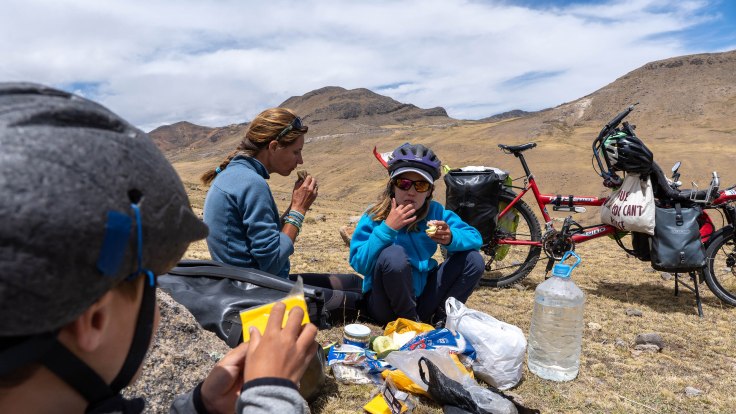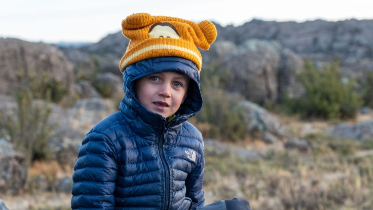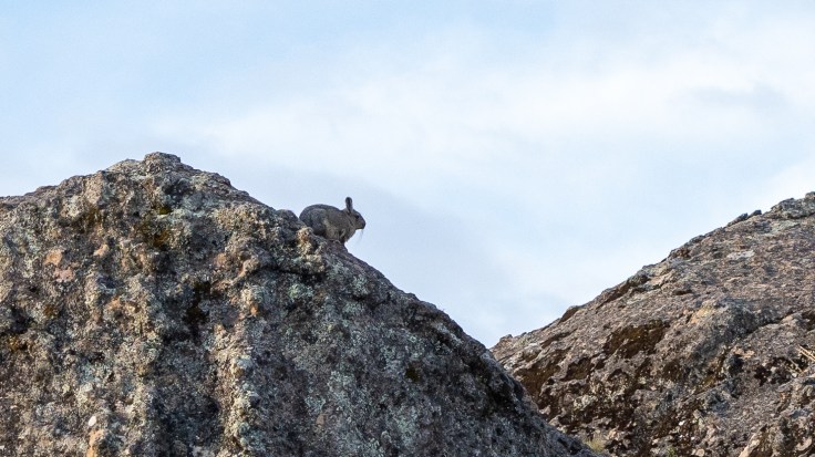 7h15, je me réveille par l’agitation autour… je sens que Sylvain est déjà en train de ranger. Il nous a laissé dormir jusqu’à cette heure-ci, même les enfants sont endormis! L’altitude nous fatigue beaucoup. Pendant que Sylvain part en repérage photo près de la source d’eau d’hier (où il verra à nouveau le hibou et des viscaches), nous profitons tous les 3 du soleil, d’un rocher, de biscottes même pas écrasées et de beurre même pas fondu grâce au frigo de cette nuit! Un délice avec un thé ou du lait pour les enfants. Royal petit-déjeuner! 😍 Même papa de retour viendra en remanger une de plus. C’est vraiment un bivouac de rêve, le site avec ses blocs, la prairie, l’eau d’accès, l’éloignement de la route nous empêchant d’entendre le bruit des camions, tout comme les blocs autour de la tente qui font aussi rempart du vent, et les vaches!