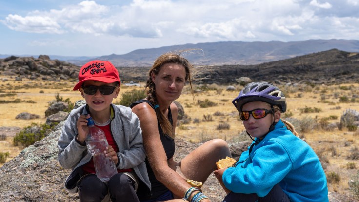 C’est que l’endroit est vraiment bucolique, la vue magnifique, et ces blocs de grimpe hallucinant. Quelques centaines de mètres de plus pour s’éloigner de la route et se cacher entre plusieurs rochers, et nous montons la tente pendant que les enfants trouvent des cabanes, des miradors et jouent. Il ne faudra guère que quelques minutes pour que Morphée s’attaque aux adultes et à Emma, pendant bien 1h. On en avait besoin malgré les 2 jours d’arrêt à Puquio. Sûrement l’altitude qui fatigue nos organismes. Cet après-midi, nous nous sommes élevés à 3815m. Alors nos globules se mettent au travail pendant notre sieste.