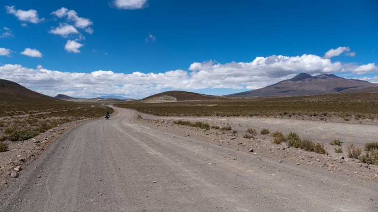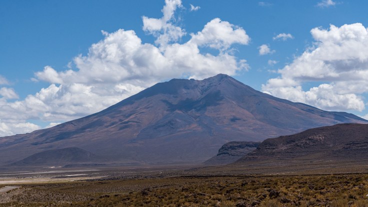 Tout à commencé à 7h, tous les 3 bien endormis, nous nous sommes faits réveiller par Sylvain, debout depuis plus d’une heure maintenant. Il fait froid ce matin, le vent fait danser la toile de tente, quelques gouttes se font entendre aussi. Un vrai temps de décembre… si on avait oublié que c’était Noël dans une semaine avec notre soleil quotidien et nos t-shirts! Mais ce matin, le ciel est bas cachant le sommet du volcan qu’il essaye d’avaler par le haut. Ça ne donne pas envie de sortir mais nous avons tout de même envie d’arriver sur la ville des environs, Llica, pour nous reposer et préparer la suite.
