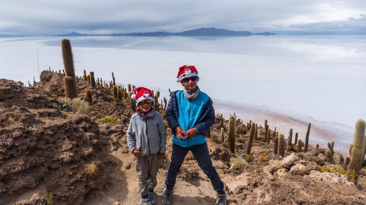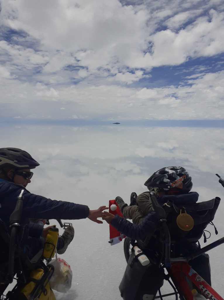 Bon, jusque là, le salar d’Uyuni a été moins vilain avec vous que son collègue ! J’espère que la partie 2 s’est tout aussi bien passée ! Les photos sont superbes et celle noir/blanc avec juste le salar , le cyclo au loin et l’ilot est particulièrement remarquable !👍👍👍 Les petits 🎅🎅 sont mignons !