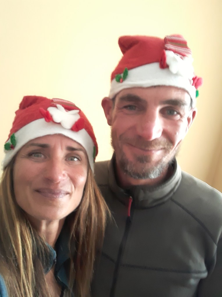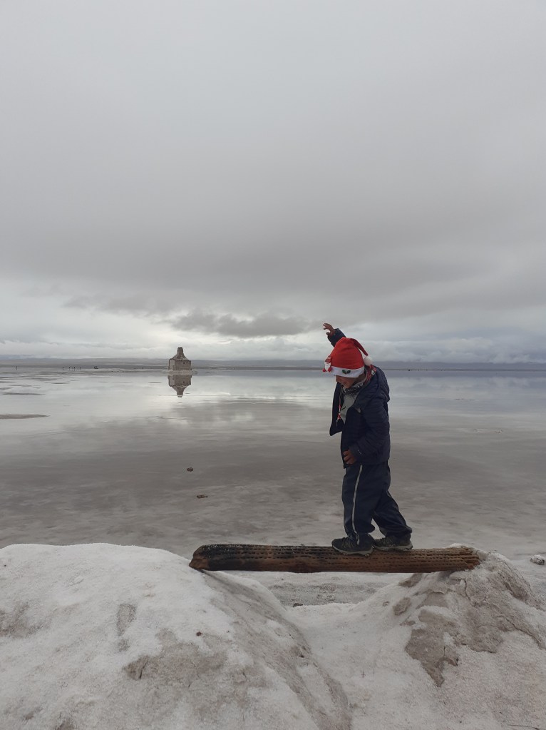Et c’est parti pour 5 nuits au sec, au chaud, à attendre Noël, à écrire au Père Noël, à nettoyer nos chaussures et les mettre près du sapin, à donner des nouvelles aux amis et à la famille, à acheter et cuisiner de bons petits plats, à préparer la suite vers le sud et la seule frontière ouverte avec l’Argentine, à se laver avec de l’eau chaude, à faire laver les vêtements boueux et salés, à repriser ce qui doit l’être (doudou, pantalons et duvet), à se soigner les lèvres qui ont endurées sur le salar sous le vent et le soleil, à aller au restaurant, à reprendre des forces… Que cela fait du bien de profiter de ce rythme là.