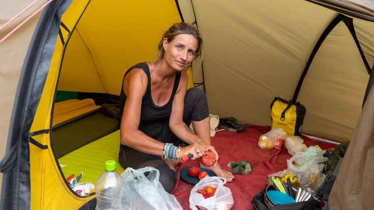De retour du repas du soir autour de la petite flamme, nous passons par notre salle de bain environnementale entre les arbres, leurs piques, les buissons, face aux montagnes qui s’éteignent. Ce soir, nous nous couchons avec le crépuscule et profitons des derniers éclairages naturels autour de nous pour nous mettre en pyjama. Pas de duvets encore ce soir à 1375m, il fait bien lourd dans l’atmosphère pour sombrer à 20h51 en musique ou en film selon les goûts…
