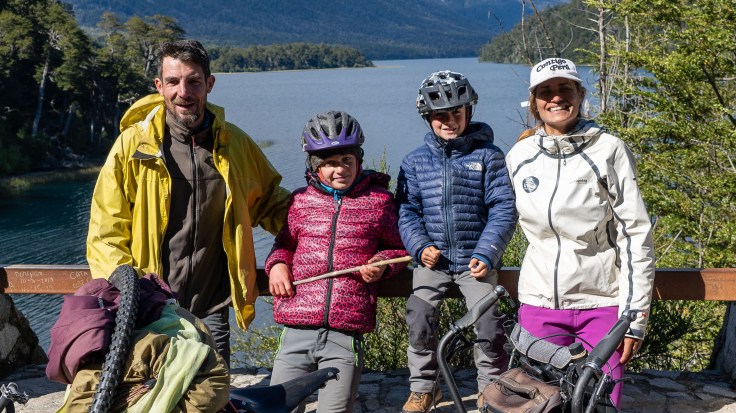 On les retrouve au mirador suivant après Laguna Ceferino : Inalco, avec le sourire, l’envie de discuter. Ils nous disent qu’ils ont voulu aller au Chili qui ne se trouve qu’à 32km… mais le poste frontière est toujours fermé. Cette 2ème fois à un mirador, nous y sommes arrivés avant eux. Alors, on les taquine que même avec nos bécanes, on va plus vite qu’eux! On rigole et on se prend en photo ensemble. Ils filent sur Bariloche ce soir. Mais avant, un grand cadeau pour nos loulous: ils leur donnent des autocollants de leur périple… il n’y a plus qu’à les suivre !