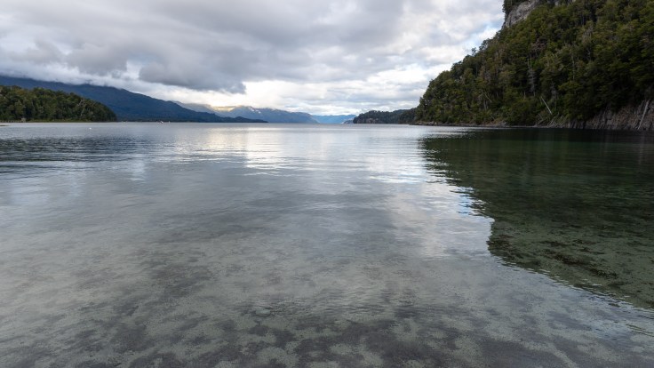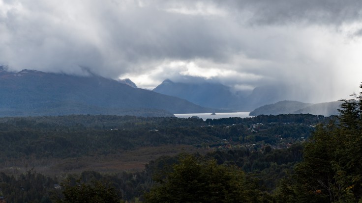 A ce mirador, nous apercevons quelques toits sur la gauche du lac. La ville est là mais bien intégrée dans la nature, au cœur de ce Parc National Nahuel huapi. Plus que 12km… Heureusement que la journée a été ponctuée de cette courte rencontre, de ces points de vue magnifiques sur la cordillère qui se cache derrière des collines et des lacs plus mystérieux abordés par des conifères.