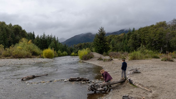 Les J710, J711 et J712 sont passés extrêmement vite. Quand on est en bonne compagnie, c’est toujours cela! De vrais vacances, dans une ville et un endroit qui nous a beaucoup (BEAUCOUP) plu, avec Pedro et Susana comme chefs cuisiniers ou guides de leur ville de Patagonie, avec un temps incertain mais qui n’enlève rien au charme de ces contrées, de ces sapins, de ce lac, de ces montagnes, de cette cascade, de cette station de ski ouverte uniquement en ce moment pour les VTT, de son port, de son isthme, de ces plages de cailloux, de cette rivière…. Comme vous l’aurez compris, on a pu découvrir avec eux tous les alentours en une journée, être ébahis par tant de beauté naturelle dans ce Parc protégé, par tant de panorama, de constructions en bois si joliment réalisées, et récompenser nos papilles par leur repas, chez eux, autour du four incrusté dans le mur, d’empenadas maison, de tarte aux pommes caramélisées…