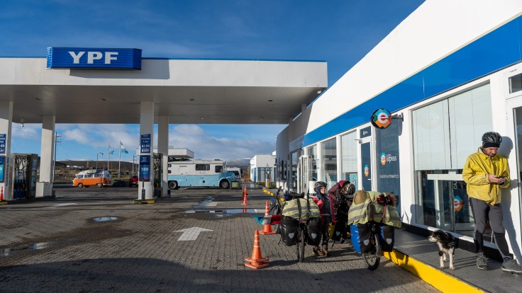 Un premier bivouac est à notre portée. Le site est propre, avec une table, un barbecue. Mais, le challenge de profiter du vent pour aller plus loin nous laisse rêveurs. On aime rêver, on le fait tous les jours depuis 2 ans maintenant. 2 ans en effet, que l’on voyage, 730 jours, pile aujourd’hui. Notre rêve, est d’arriver à aller jusqu’au bout. Comme aujourd’hui il ne pleut pas, il ne neige pas et le vent est favorable, on en profite. On fonce jusqu’au village suivant: Gobernador Costa, à 13km. Même route mais moins de vent aidant. Aie, on m’aurait menti, il faut pédaler? Le rythme ralenti, le Panzer s’éloigne à l’inverse du village que nous pouvons apercevoir.