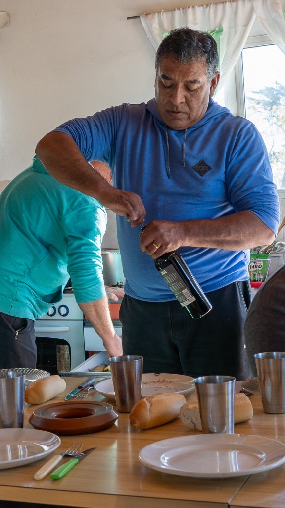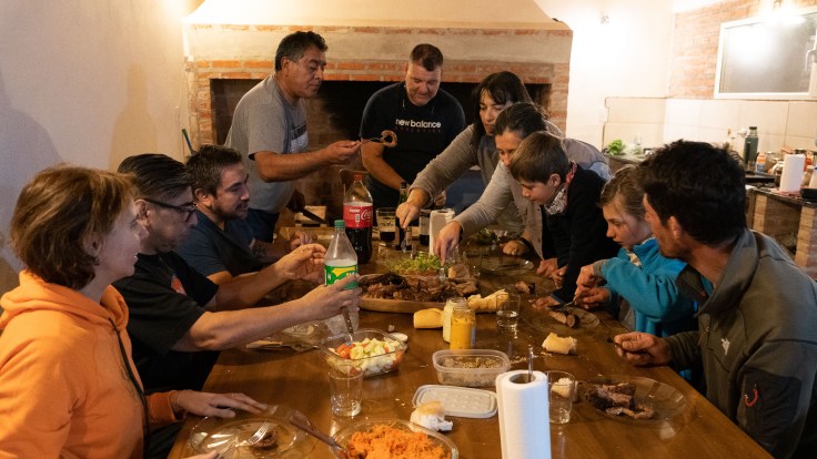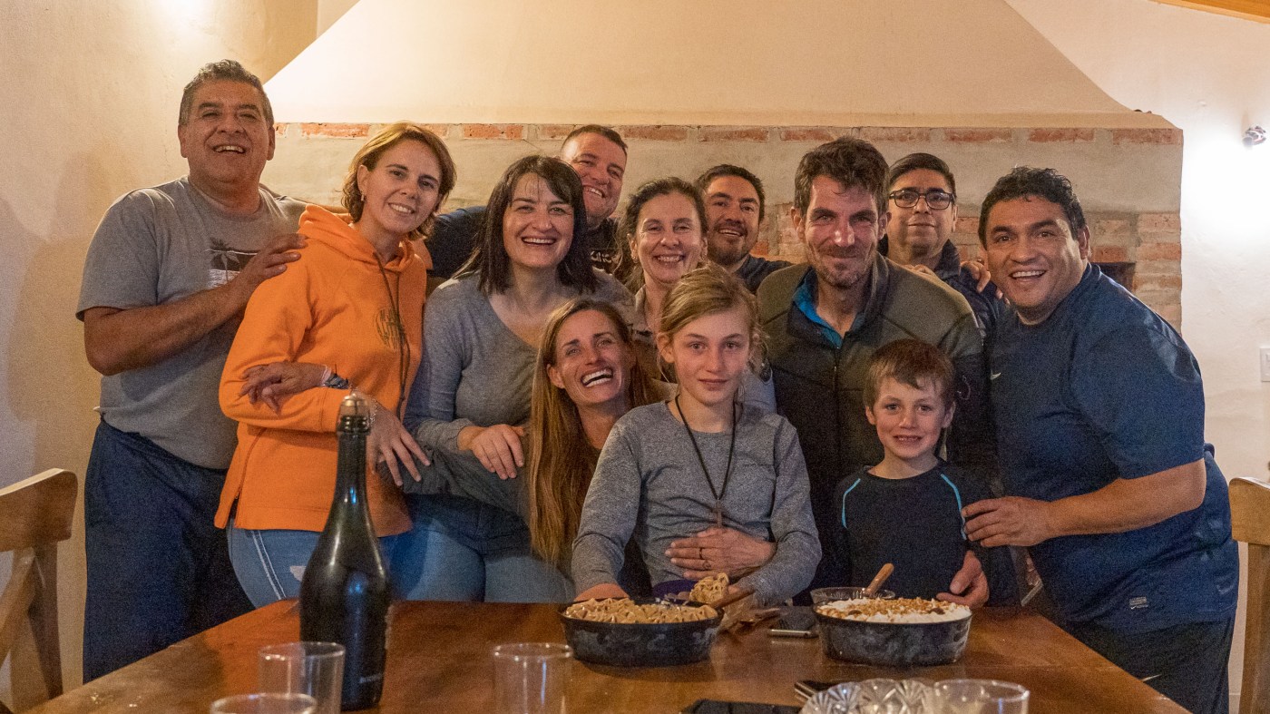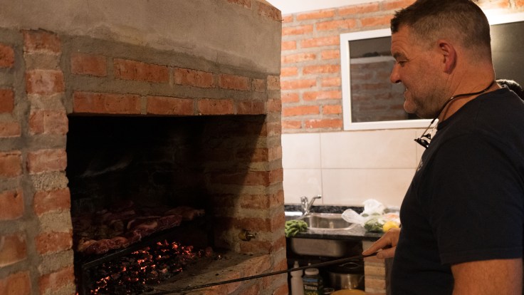 Nous avons mangé des viennoiseries qu’ils avaient installées pour nous, du lait, des jus et du thé. Nous nous sommes installés dans deux chambres à l’étage de la maison de Bibi et Beto. Nous avons pu prendre une douche. Nous avons écouté une séance de karaoké, digne de ce nom, entonné par nos amis. Bravo aux chanteurs d’ailleurs (même Raphaël a osé chanté « Le lion est mort ce soir »). Nous avons dégusté, apprécié, savouré un asado digne de ce nom entouré de personnes incroyables. Un moment rare et intense où vous avez l’impression de faire partie d’une famille pendant un instant. On le prend ce moment avec toute son aura de gentillesse de leur part. Les photos parlent d’elles-mêmes.