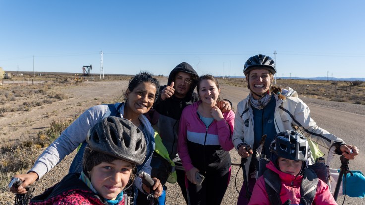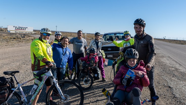 On a rencontré beaucoup de monde au cours de ce voyage. Des moments riches à chaque fois, on le dit toujours, et c’est vrai. D’ailleurs on se souvient de tous, de tous les visages, des moments associés, c’est la grande richesse de ce projet. Mais il y a des rencontres particulières… Pour les plus récentes, Claudia et Juan à Abancay au Pérou, Ariel à San Juan en Argentine, Gisèle à Chos Malal pour l’anniversaire de Raphael… Il y a désormais toute l’équipe de ce club de vélo de Pico Truncado. Ces 2 jours entiers passés en leur compagnie nous marquerons. Quel accueil! Ils nous ont offert tant de gentillesse, se sont adaptés à notre timing, nous ont permis de découvrir un autre visage de la Patagonie, celui d’une ville de travailleurs en plaine, où les ressources sont étonnamment diversifiées. Ici se côtoie le pétrole, le gaz, l’éolien, les mines d’or et d’argent. En revanche, pas ou peu d’eau… toute cette région de la Patagonie n’est pas irrigué, ce qui nous aide à comprendre l’éloignement des villes ou villages et autant de surface désertique.