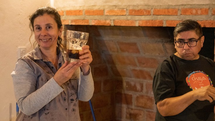 Nous n’allons pas trop loin. Sur ces terres, Chule et Mirna possèdent une maison en construction. L’heure est à la visite, au nettoyage du poulailler, au maté pour eux autour de discussion tous ensembles. Avant la nuit, nous retournons chez Beto et Viviana où un dernier moment convivial nous réunit tous dans leur Quincho. Des au-revoirs tardifs tellement nous sommes bien.