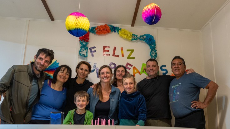 Pépino, le frère de Mauricio et Adrian, nous retrouve ici pendant toute la soirée et une partie de la nuit. Jusqu’à minuit au moins, pour me fêter mon anniversaire avec la bougie en plus sur la glace! C’est donc bien entourée que je la souffle et entame follement cette année! Quelle surprise de le fêter ainsi, un plaisir de le partager, à jamais gravé dans ma mémoire, dans nos mémoires, dans notre voyage, dans notre vie. Merci à eux, Merci du fond du coeur à vous tous. Vous êtes des êtres extraordinaires!