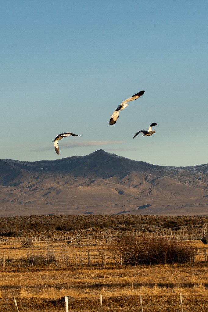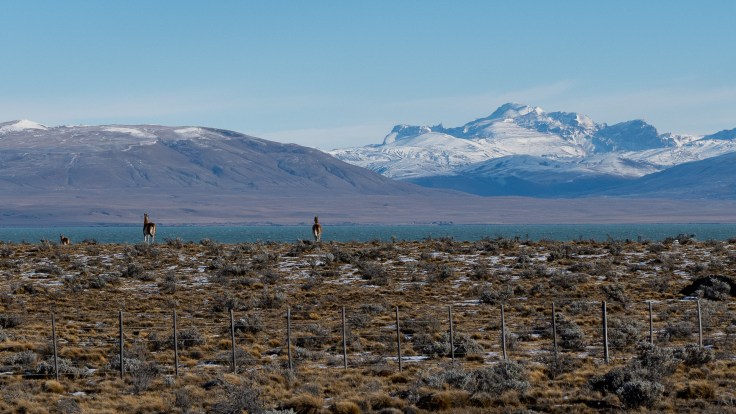 Les guanacos sont autour de nous, nous observent depuis leur mirador sur la crête des collines. Leur ombre se détache du ciel bleu, tel des prédateurs guettant leur proie: nous! Bon, ce n’est pas vraiment le cas, ils fuient dès qu’ils nous aperçoivent, à plus de 100m même. Parfois, incompréhensibles, au lieu de partir dans le sens inverse pour s’éloigner, ils sautent la clôture et passent juste devant nous! Malheureusement, les petits n’y arrivent jamais et restent coincés d’un côté ou de l’autre de la barrière. C’est dur de les voir comme prisonniers, galopant devant nous pour trouver une brèche qui jamais n’arrive. Alors ils nous accompagnent pendant des kilomètres et se fatiguent. Les carcasses des animaux dans les fils témoignent aussi de cette dure réalité, de ces passages qui devraient être libres, naturels. Nous, nous le sommes et continuons notre route parmi les centaines de troupeaux de guanacos, de ces tâches beiges qui remontent sur le flanc des collines marrons, comme de petits crabes sur les rochers.